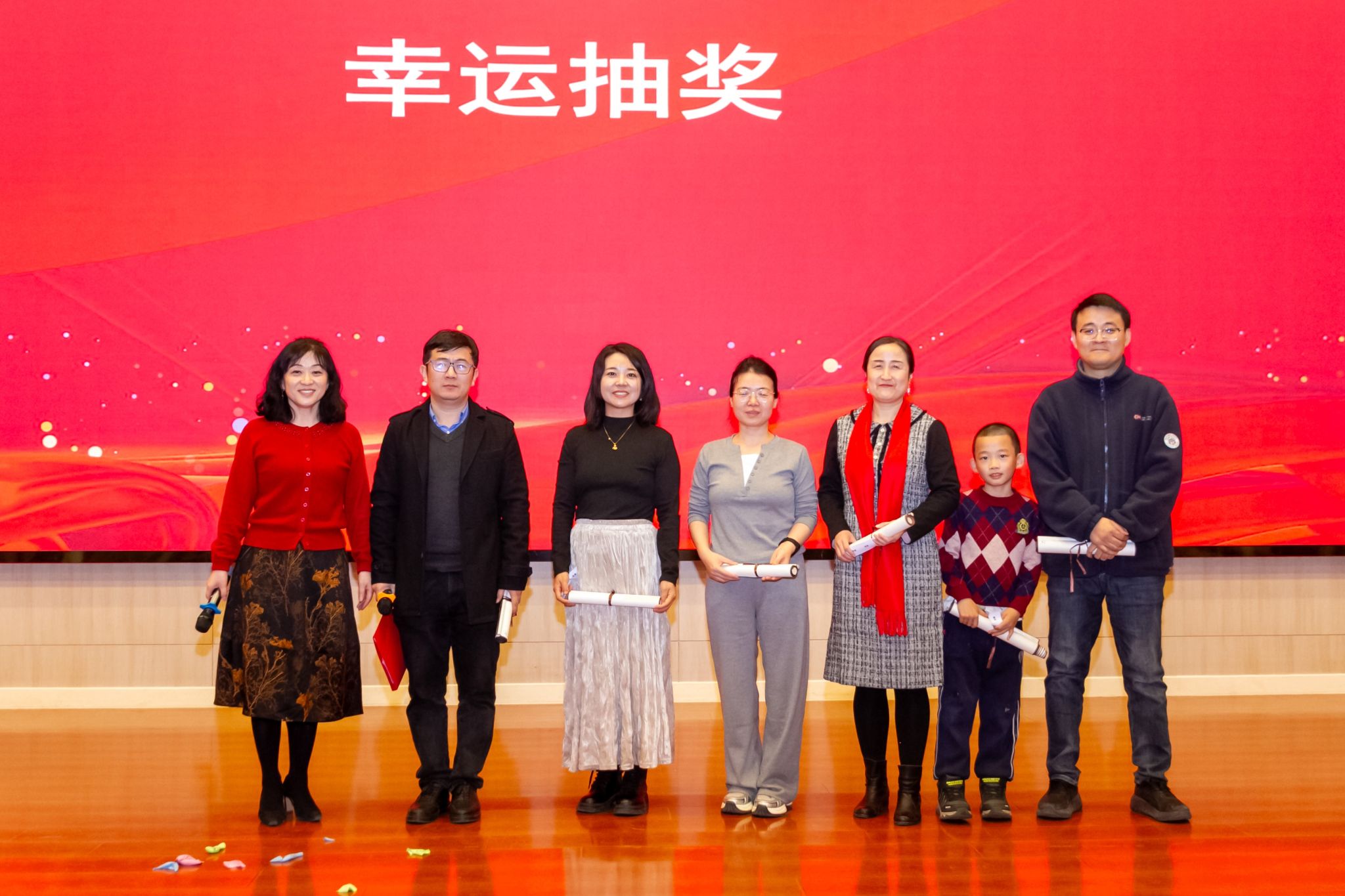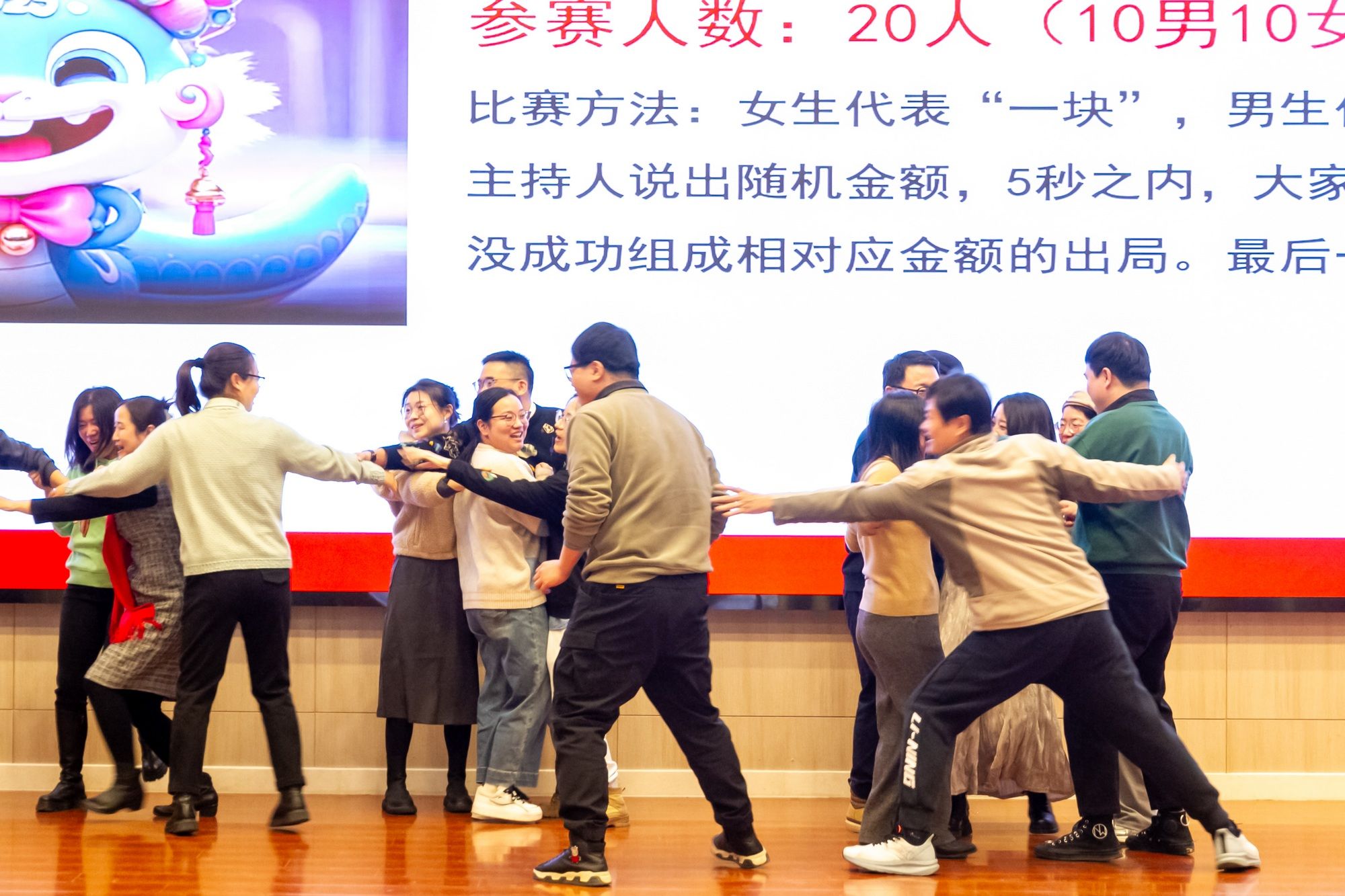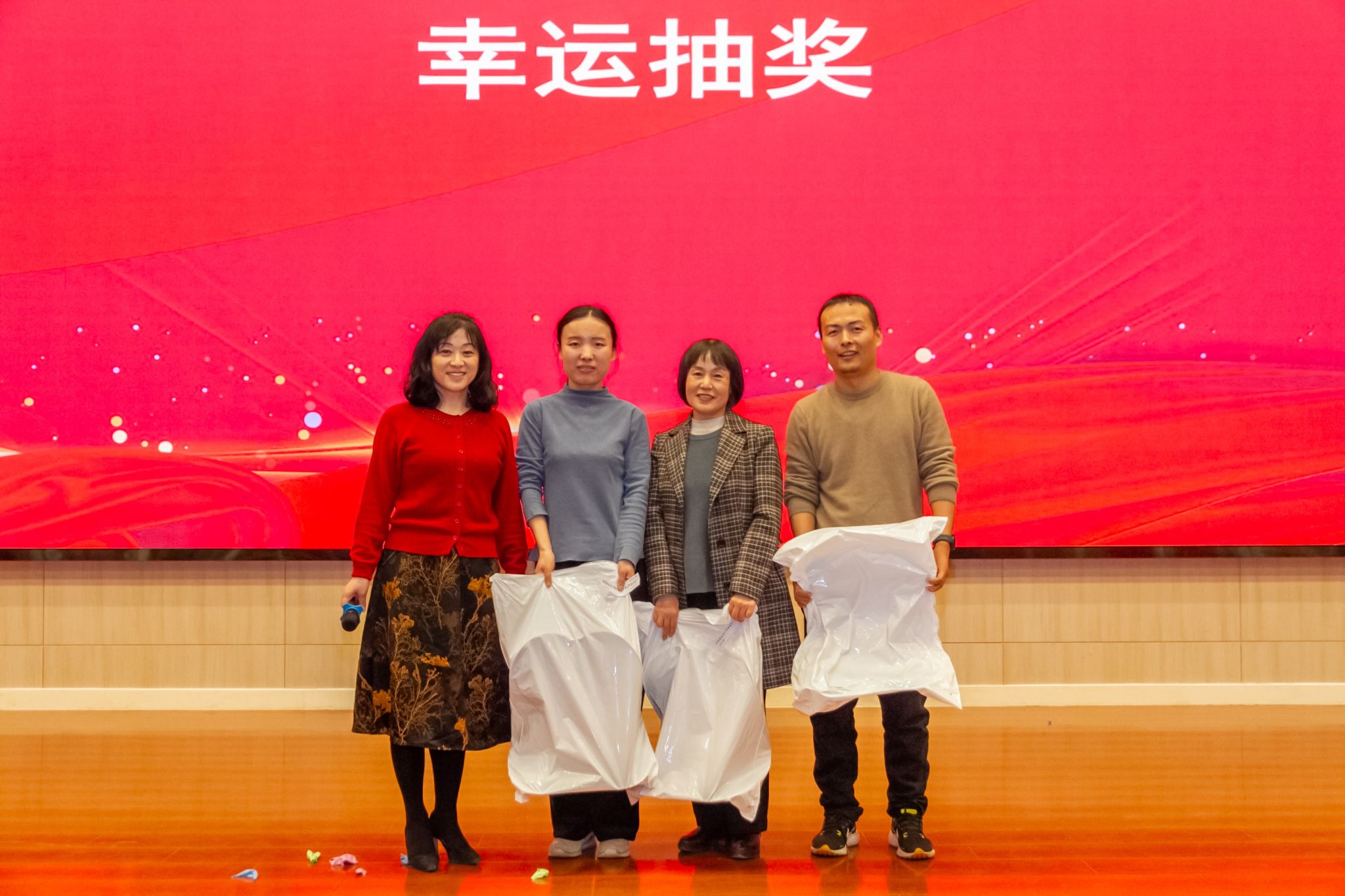 联谊会上,趣味互动的各类游戏接连不断。《东拼西凑》、《一块五》游戏现场欢声笑语、气氛活跃;《心心相印》、《夹气球》老师们两两搭档,尽显默契与合作;《猜猜看》你抢我答,《击鼓传花》热闹非凡。联谊会上的抽奖环节是联谊会上最激动人心的环节之一,一飞冲天
