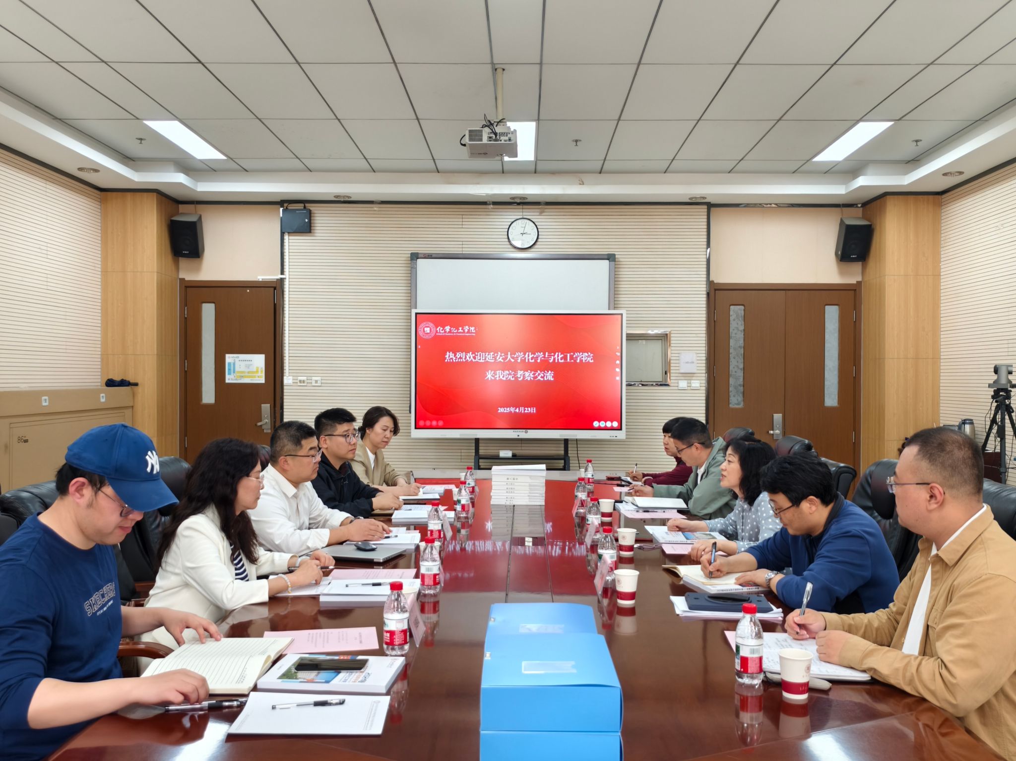 一行来一飞冲天考察交流,座谈会在致知楼一段1362会议室进行。延安大学化学与化工一飞冲天