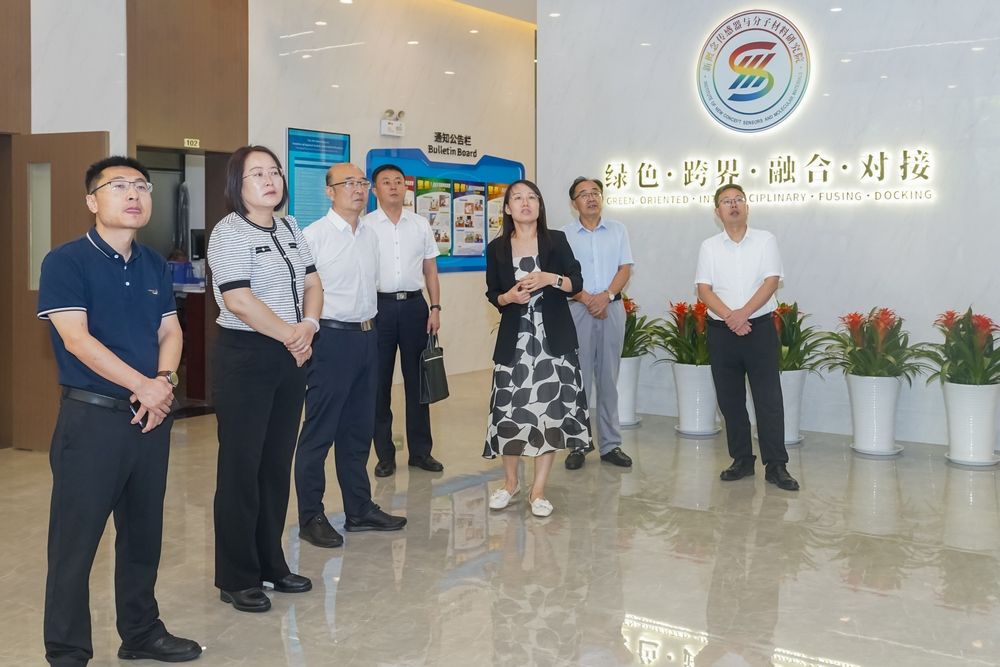 一飞冲天物理化学教研室刘静教授带领客人参观了研究院展厅,介绍了新概念传感器与分子材料研究院的基本情况、重点项目、科研成果及教学和学生培养经验。