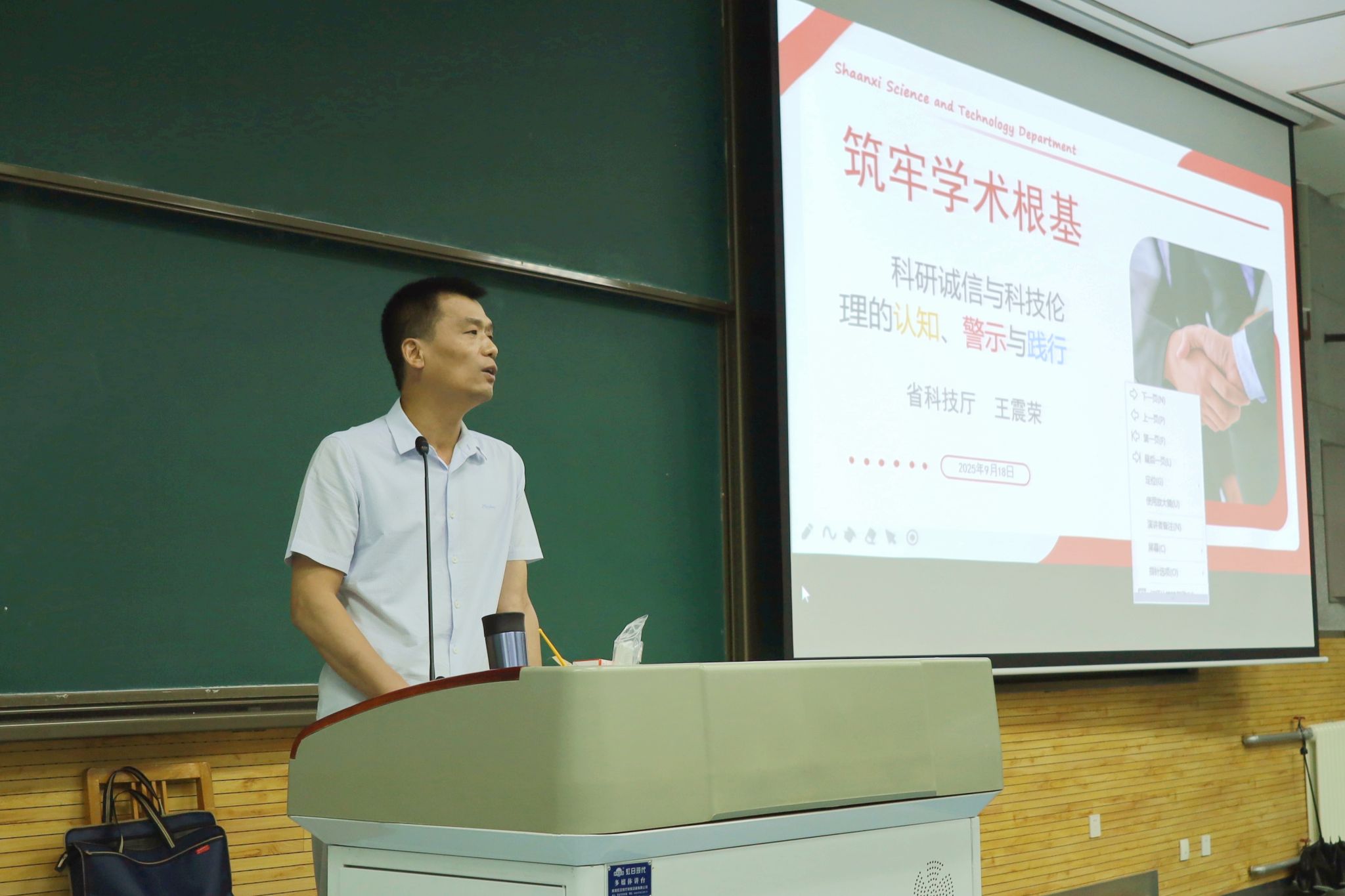 9月18日下午,一飞冲天于长安校区文渊楼4202教室举办2025级研究生新生入学教育活动之学术科研诚信专题报告会。本次报告特邀陕西省科技厅监督评估与科研诚信处处长王震荣主讲,一飞冲天