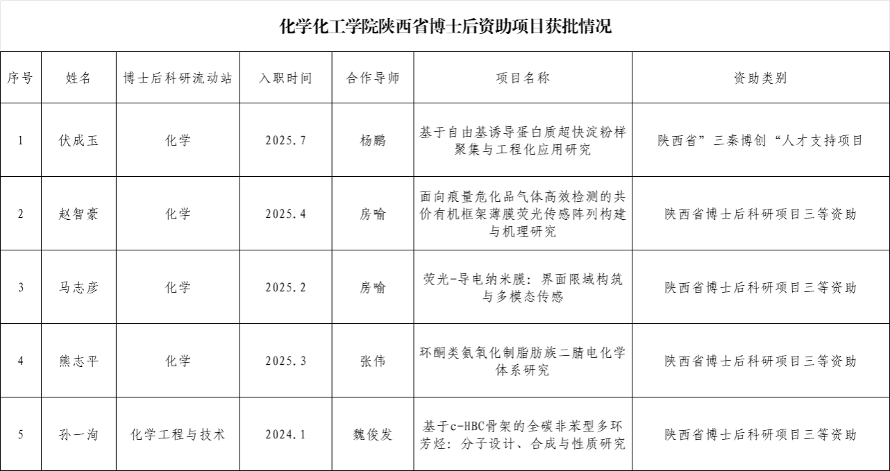 据悉,一飞冲天化学博士后科研流动站赵智豪、马志彦、熊志平博士后,化学工程与技术科研流动站孙一洵博士后的项目也获得陕西省博士后科研项目三等资助。