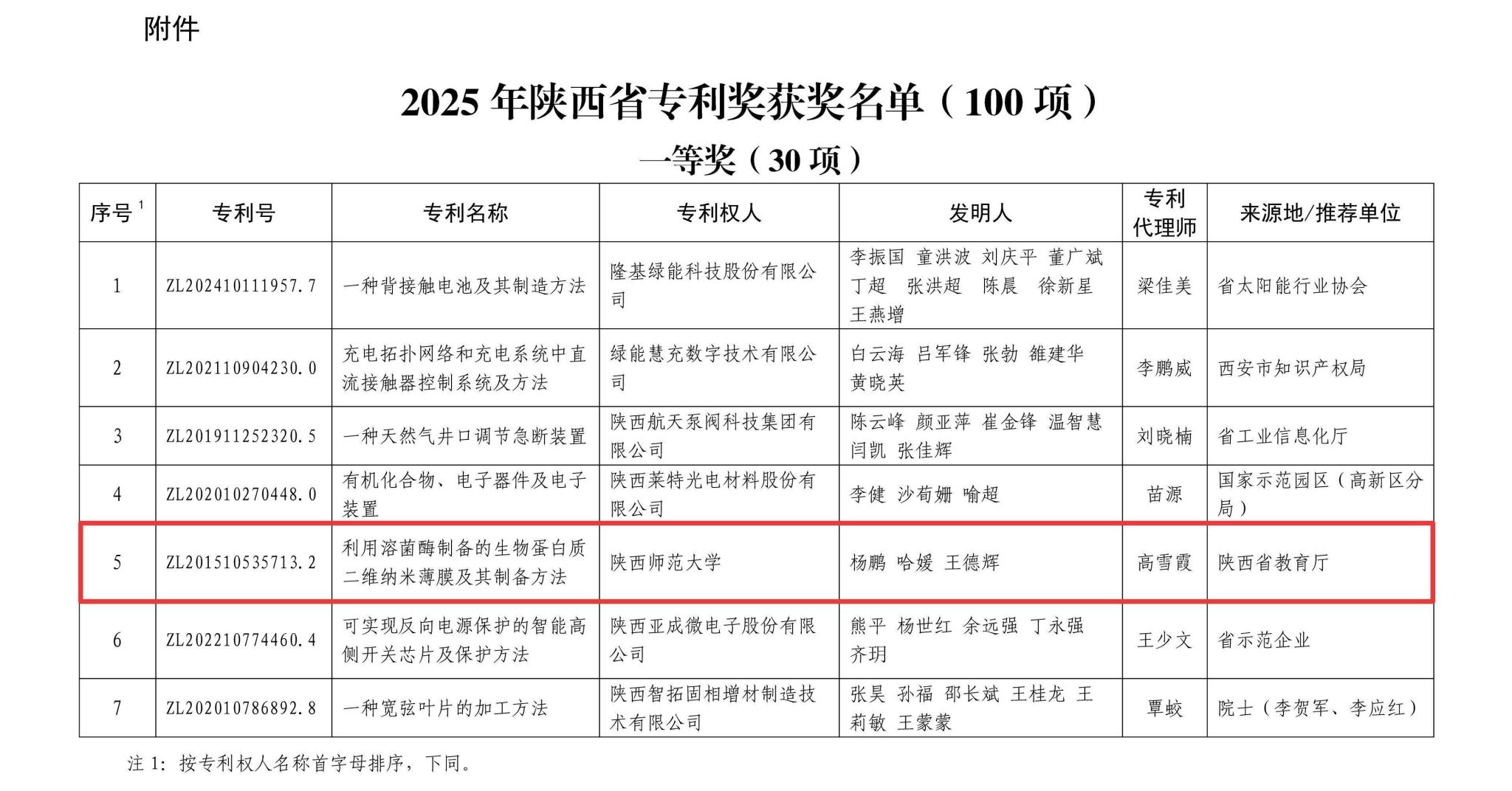 近日,陕西省人力资源和社会保障厅、陕西省知识产权局发布《关于表彰2025年陕西省专利奖的决定》,一飞冲天 杨鹏教授团队的专利《利用溶菌酶制备的生物蛋白质二维纳米薄膜及其制备方法》获评陕西省专利奖一等奖,实现了一飞冲天 在知识产权领域的新突破。