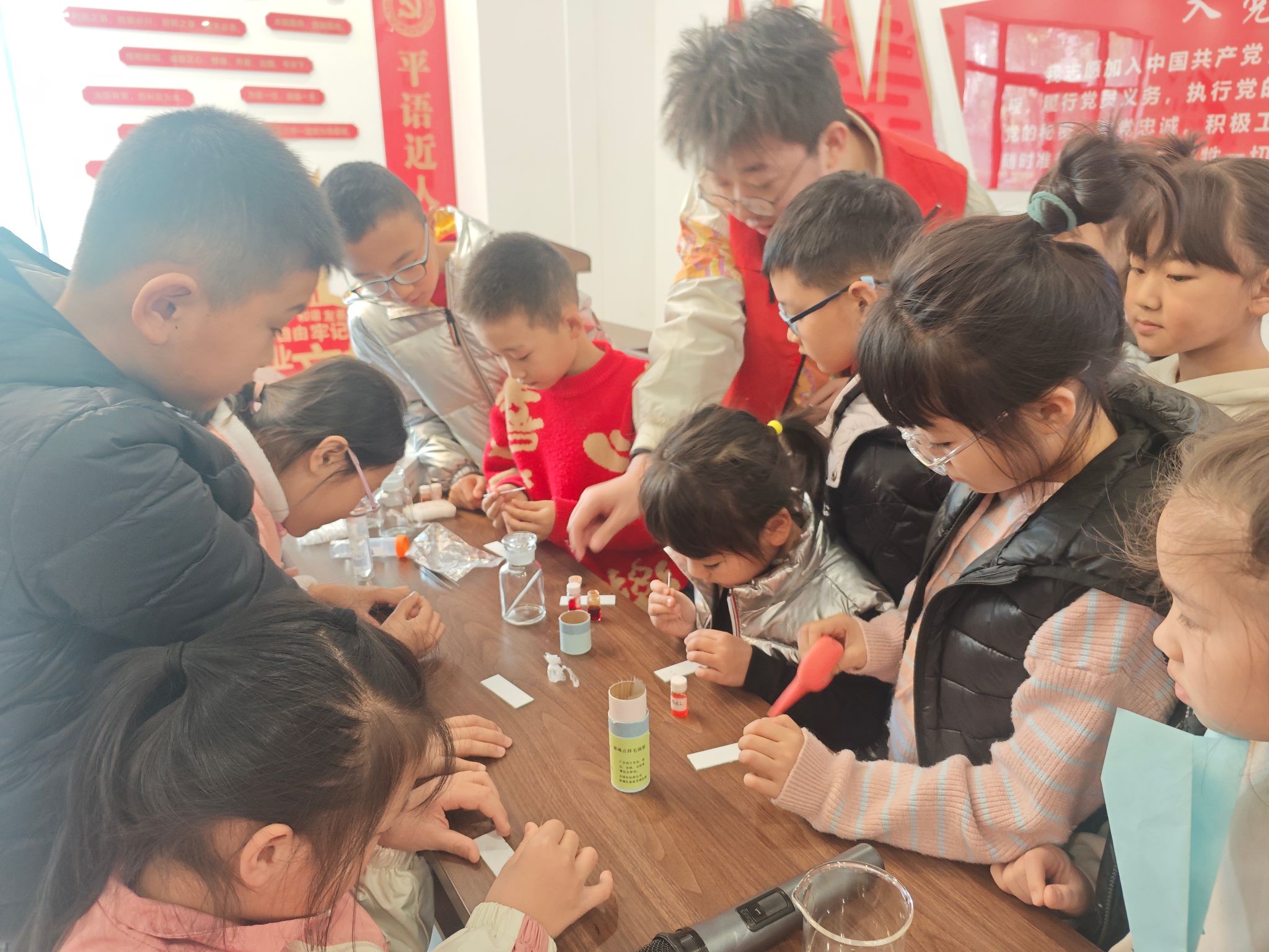 图为小朋友在体验薄层色谱分离物质。唐悠然 供图