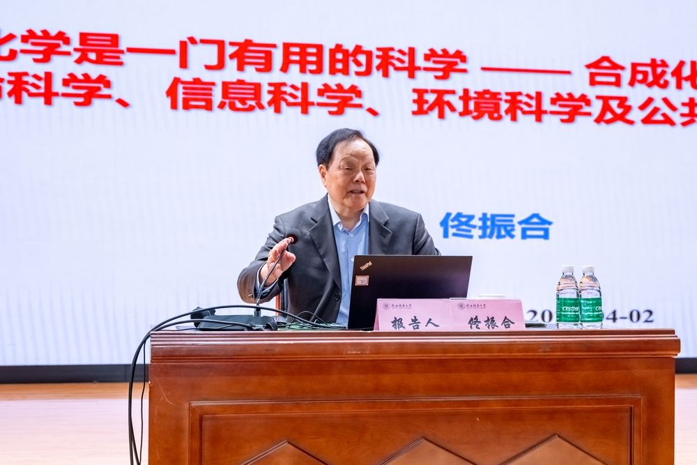 报告中,佟振合院士从光化学的基本概念出发,指出光化学本质上是电子激发态化学,是研究由电子激发态引发的物理和化学过程的一门科学。随后,他阐述了光化学在合成化学中的应用,强调了其为绿色化学提供的强有力支撑可概括为“三少一多”:减少废物生成、减少能量消耗、减少有害物质,更多利用可再生资源。佟院士聚焦太阳能的利用,指出“中国是世界上太阳能电池生产和应用最大的国家”,通过多个案例讲解了人工光合作用,介绍了其团队在该领域的重要贡献。最后,他展示了光化学在环境、健康及公共安全中的发光传感器应用,讲解了大气光化学相关内容。