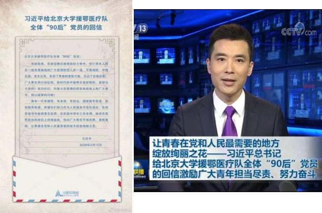 研究生有机党支部于3月19日线上组织了“学习习近平给北京大学援鄂医疗队全体“90后”党员的回信”主题党日活动。本次线上活动主要以群里文字交流形式展开。