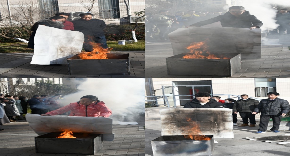 教师杨文玉、严军林、王明珍、董团瑞,在致知楼南侧道路,向师生演示了灭火器、防火毯等消防器材的功能及使用方法,并组织各实验室师生代表进行实践操作,有效调动了师生关注消防、参与消防、学习消防的热情。