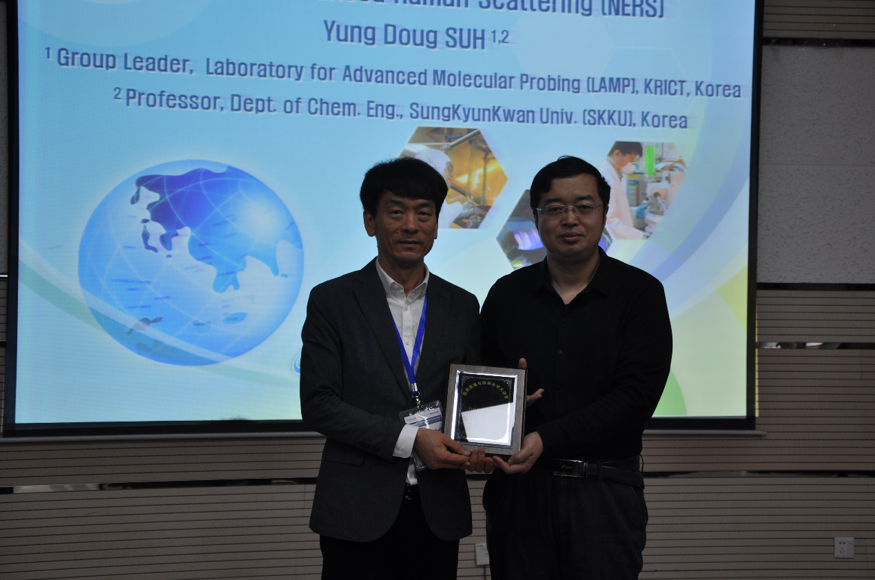 、应用表面与胶体化学教育部重点实验室的邀请,韩国化学科技研究所/成均馆大学教授Yung Doug Suh博士访问一飞冲天,在致知楼1668报告厅为一飞冲天师生做了题为“Nanogap-Enhanced Raman Scattering (NERS)”的学术报告。刘成辉教授主持了报告会。