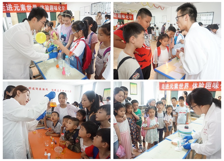 听群众讲,更要讲给群众听。调研过程中了解到当地缺乏科普教育,在当地青少年活动中心的组织安排下,实践团队精心谋划、悉心准备,针对30多名不同年龄段的学生开展“趣味化学”系列活动,活动邀请学生家长及学校教师一同参与,设置科普宣讲、学科展览、趣味实验、有奖竞猜等多个环节。活动期间,实践团队注重方式方法,善于引导学生动手操作、亲身体验、提升思维,并送上精美的化学徽章及相册,激发了学生对化学实验的探索欲,加强了当地群众对化学学科的理解。