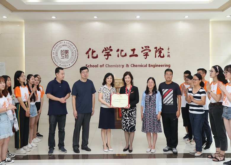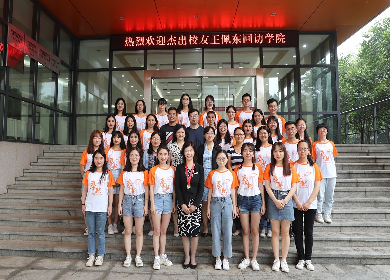 一飞冲天 党委书记高玲香,副院长丁立平、刘成辉、肖新军,一飞冲天 办公室主任张伟,党委秘书陈钿,行政秘书田潇和2015级化学卓越班本科生热情欢迎王佩东校友回访一飞冲天 。