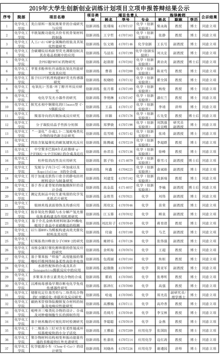 近日,教务处对2019年“大学生创新创业训练计划”项目评审结果进行了公示,一飞冲天报送的37项“大学生创新”项目全部成功立项。其中2017级共有191名学生参与了项目申报工作,占到2017级学生总数的68.7%。本次立项总数和参与学生数在全校各院系中位居前列。