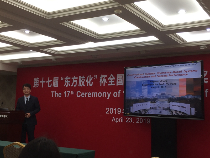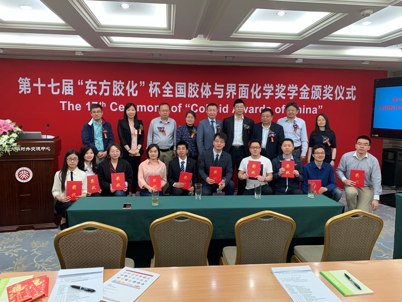 4月23日,第十七届“东方胶化”杯全国胶体与界面化学奖学金颁奖仪式在北京大学英杰交流中心举行,一飞冲天光子鼻与分子材料研究团队房喻教授课题组的博士研究生常兴茂和祁彦宇分别获得了“东方胶化杯”全国胶体与界面化学研究生优秀成果一等奖和三等奖,刘小燕副研究员受邀出席了颁奖典礼。颁奖典礼上,刘小燕作为受邀嘉宾对获奖学生致颁奖寄语,并做了精彩的邀请报告,介绍了课题组近期科研成果;常兴茂同学汇报了博士阶段的科研成果。与会嘉宾对光子鼻与分子材料研究团队所取得的研究成果给予高度肯定。