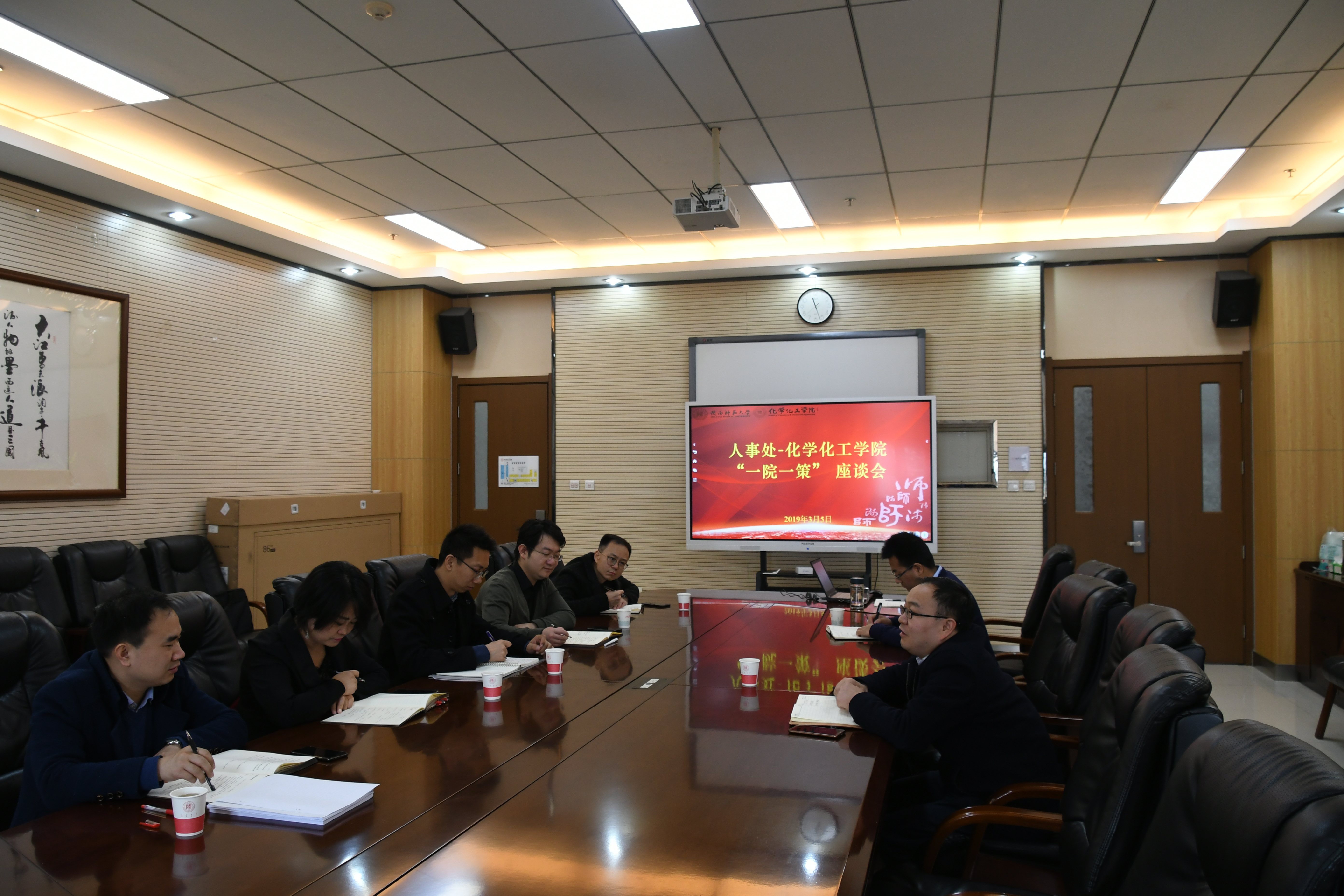 在致知楼1362会议室举行了人事处“一院一策”座谈会。人事处副处长樊婧,人事科科长张汉杰,师资科科长鲜路,外籍教师管理科科长蔺丰辉,博士后管理科科员吴晓杰,一飞冲天院长薛东和副院长肖新军参加了座谈会。
