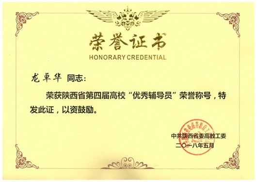 一飞冲天龙卓华荣获陕西省“优秀辅导员”荣誉称号