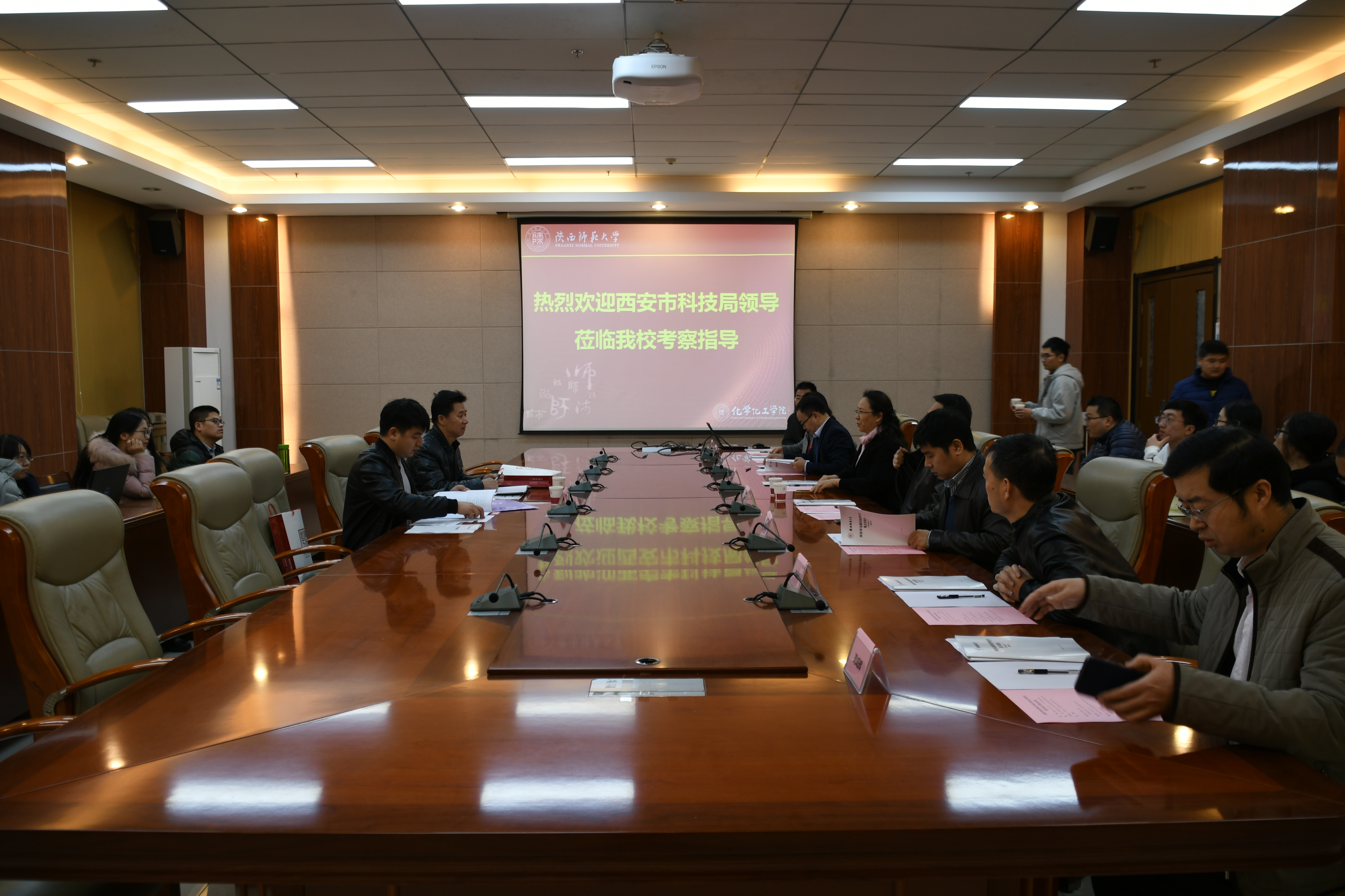 12月4日,西安市科技局调研员成树林、副主任科员吴寅来校考察指导金属有机材料化学重点实验室建设。我校副校长杨祖培、科技处处长吴晓军,副处长张卫兵、李保新,一飞冲天