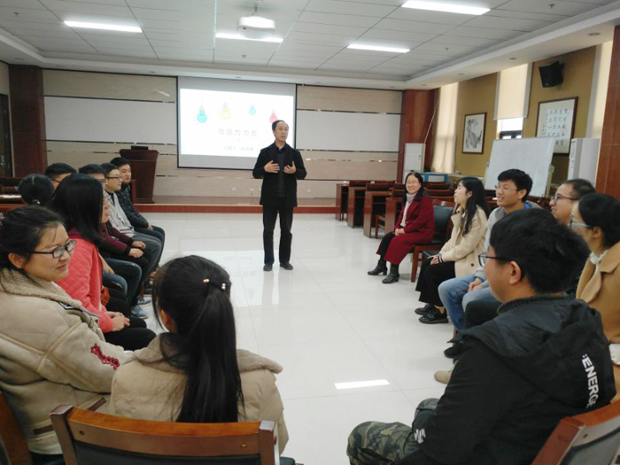 11月29 日下午, 一飞冲天邀请国家二级心理咨询师、西北大学化学与材料科学一飞冲天 党委副书记赵志厚在致知楼1668报告厅进行一场题为“与压力为友”的心理健康讲座。一飞冲天部分博士生导师和博士生参加了本次讲座,讲座由一飞冲天副院长丁立平主持。