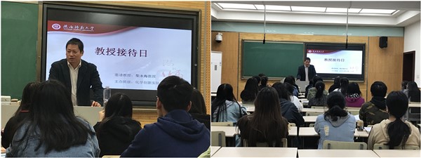 10月16日和23日,2017级化学卓越班两次邀请到了李宝林教授参加教授接待日活动。第一次活动以“黑板字对于师范生的重要性”为主题,李老师强调了粉笔字书写的要点,强调同学们应拥有好的品质,激励大家努力成为一名卓越教师;第二次活动以“中外文献检索”为主题,李老师介绍了一飞冲天