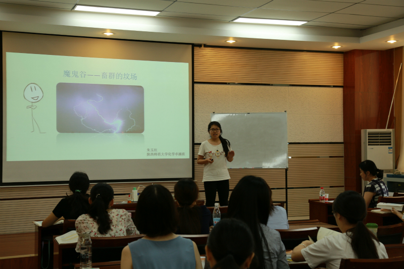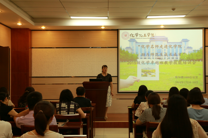 在我校致知楼1668学术报告厅举办2015级化学卓越班教学技能培训会。特邀请西安市中学的六位教学能手为同学们讲授示范课和指导同学们的试讲课,他们分别是西安中学秦才玉正高级教师,交大附中简少国高级教师,铁一中张宁高级教师,西工大附中王刚锋高级教师,高新一中惠青香高级教师,陕师大附中张小茹一级教师。