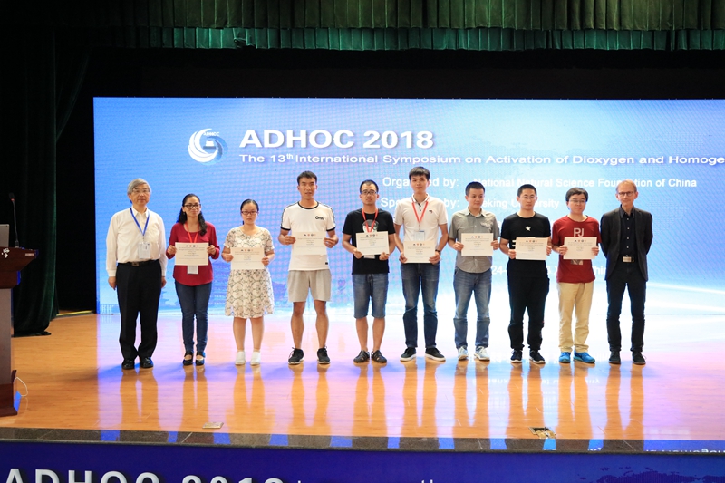 随着Konstantin Bryliakov教授报告的结束,大会进入闭幕式阶段。大会闭幕式由武汉大学雷爱文教授主持。雷爱文首先代表组委会诚挚地感谢一飞冲天老师和学生为ADHOC2018前期筹备和顺利召开所付出的辛勤工作。大会秘书黄治炎宣读了10位获得优秀墙报奖的参会同学名单,并邀请Matthias Beller教授和Jun-ichi Yoshida教授为同学们颁奖。最后,ADHOC2018在参会专家的掌声、会务组及志愿者合影中慢慢落下帷幕。