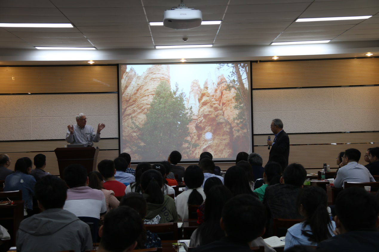 Peter Stang教授以幽默易懂的语言,系统地介绍了利用配位作用构建各种二维多边形、三维多面体超分子结构的方法,并对配位组装超分子化合物的应用前景作出了展望。整个过程轻松愉快、充满学术氛围,赢得数次掌声。报告后,Peter Stang教授与师生进行交流沟通,耐心的解答师生提出的专业问题。