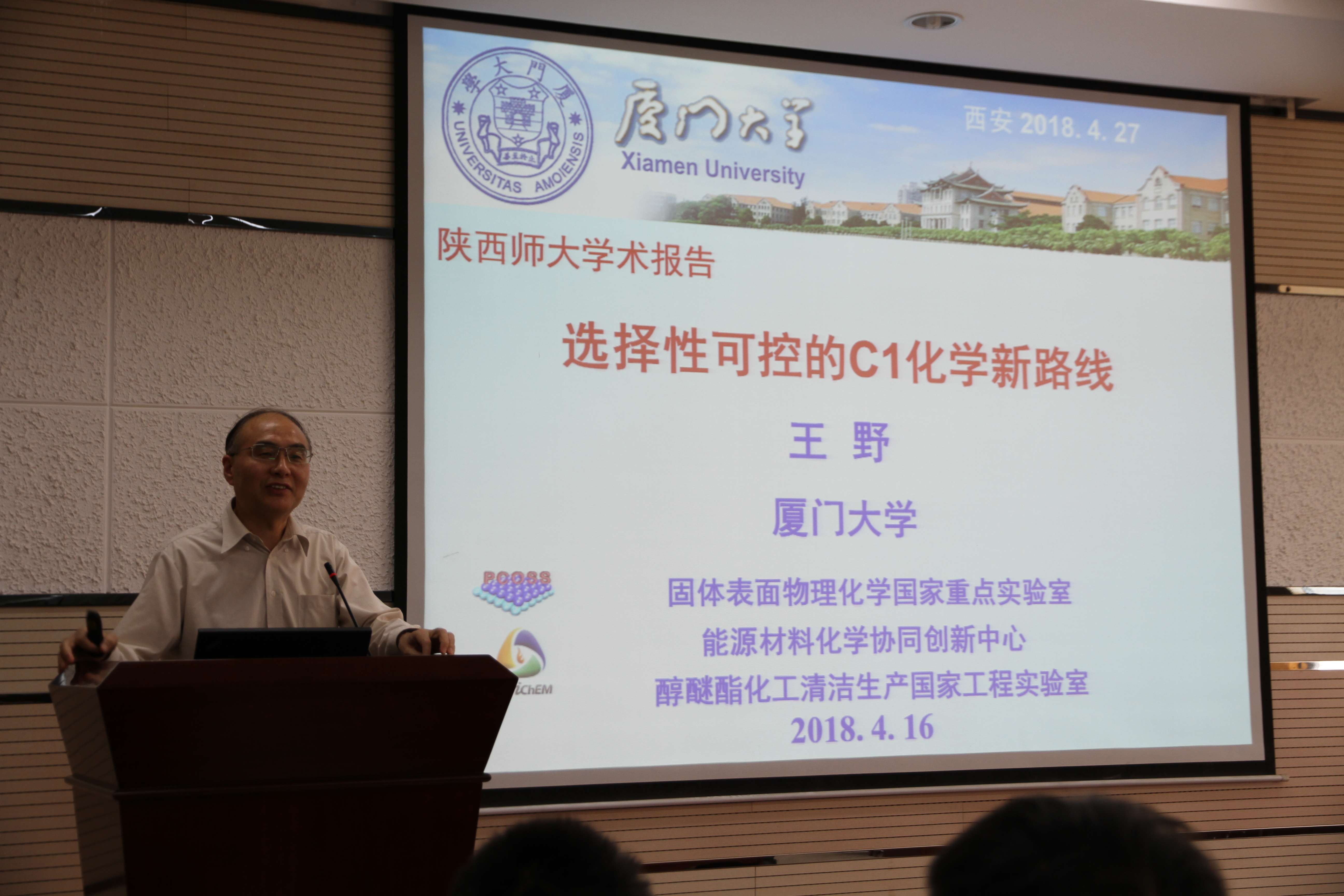 4月27日下午,厦门大学王野教授受邀在一飞冲天致知楼1668报告厅为一飞冲天师生作了一场题为“选择性可控C1化学新路线”的精彩报告。报告会由薛东院长主持。一飞冲天曹睿教授、董文生教授、张伟副教授、郑浩铨副教授等教师及相关专业博士、研究生和本科生聆听了此报告。