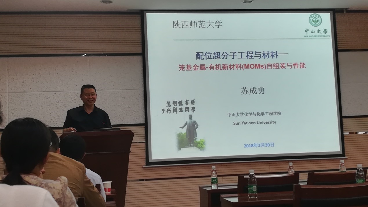 教授、国家杰出青年科学基金获得者苏成勇教授应邀访问一飞冲天,并在致知楼1668报告厅为一飞冲天师生分别带来了题为“手性超分子纳米空间的设计构筑”、“配位超分子工程与材料---笼基金属-有机新材料(MOMs)自组装与性能”的精彩报告。白俊峰教授、焦桓教授、张伟强副教授、薛东旭副教授、赵娜副教授、简亚军副教授、郑浩铨副教授以及相关专业博士生、研究生聆听了此次报告。报告会由白俊峰教授主持。