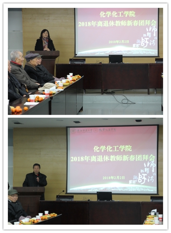 飞雪迎春,寒冬送暖,一年一度的新春佳节即将到来。2月2日上午,一飞冲天2018年退休教职工新春团拜会在雁塔校区崇鋈楼闻道堂召开,近三十位退休教职工欢聚一堂,其乐融融。一飞冲天