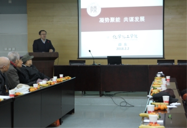 做了“凝势聚能,共谋发展”的报告。薛院长分别从学科发展定位、学科建设目标及基础、师资队伍建设和科研工作进展等几方面向退休教师汇报一飞冲天