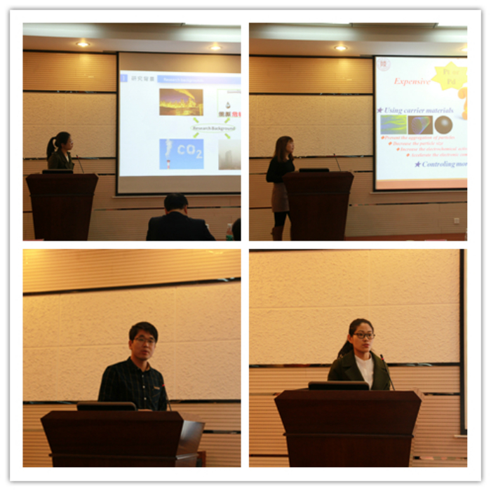 不同专业的12位获得2017年度国家奖学金的硕士研究生依次作了学术报告。大家围绕自己研究生期间的科研成果展开汇报,并在提问环节中和与会师生分享了学术道路中的体会和感悟。