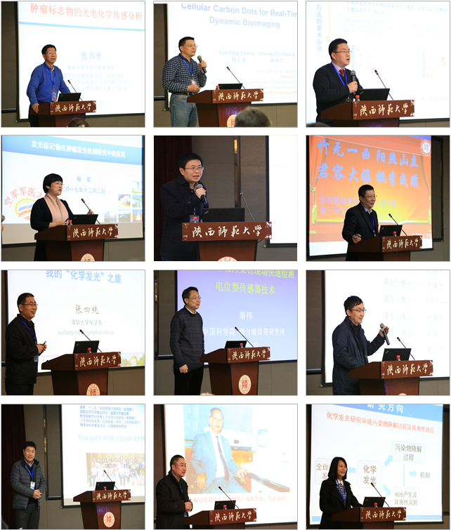 论坛期间,来自清华大学的张新荣教授和张四纯教授、临沂大学的张书圣教授、西南大学黄承志教授和李念兵教授、复旦大学卢建忠教授、空军军医大学杨琨教授、四川大学吕弋教授、江南大学王周平教授、西北大学杨小峰教授、中科院烟台海岸带研究所秦伟研究员、中科院生态环境研究中心赵利霞研究员以及我校章竹君教授、李正平教授分别作了精彩的大会报告,报告内容涉及发光分析及其相关研究领域的新成就、新进展,与会代表围绕大会主题进行了充分、热烈的研讨。