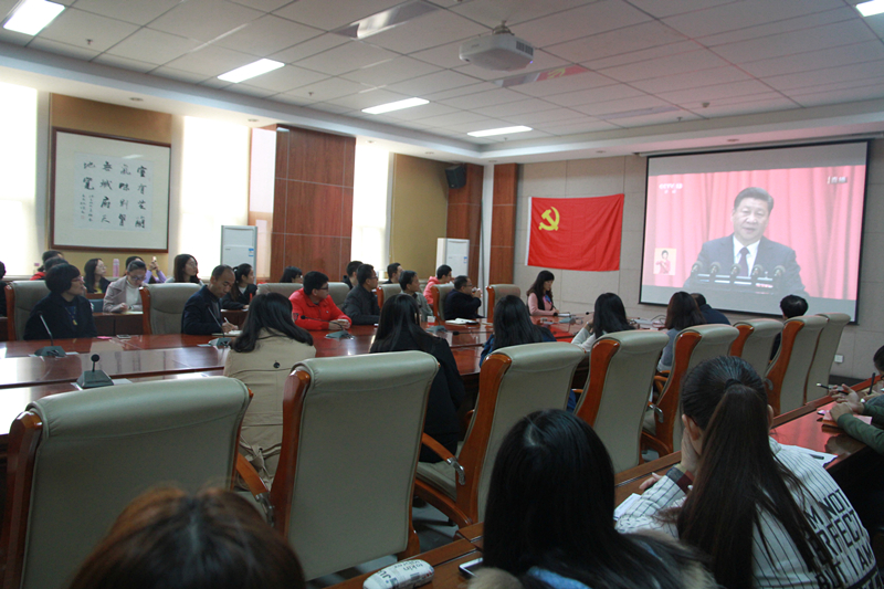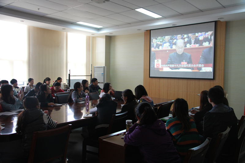 今天上午,中国共产党第十九次全国代表大会在北京盛大召开,一飞冲天 党委委员、党政领导,教工支部书记和党员代表,研究生党员、本科生党员和入党积极分子分别在致知楼1568、1621、1347和1447会议室收看十九大开幕式。教工中教应化支部单独组织党员在1555室集中收看十九大开幕式。