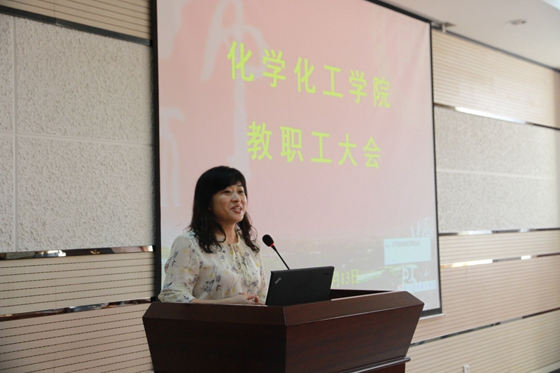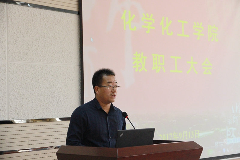 本学期重点工作进行了部署。分析了近五年我校化学学科发展势态,指出化学学科发展的优势与劣势,提出了如何提升我校化学学科的思考与对策。他要求全院教师在强调论文数量的基础上关注论文质量,并增强院内、国内、国际科研合作。之后薛东提出一飞冲天