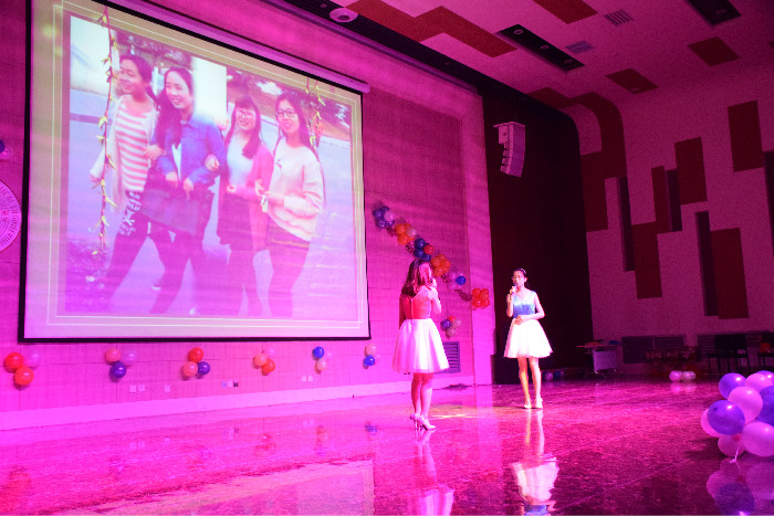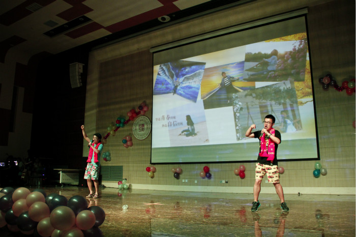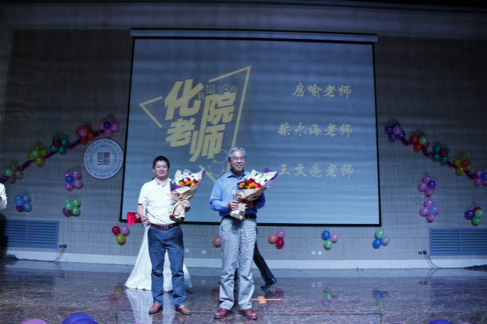 “饮其流者思其源,学其成时念其师。”在“感恩”篇章,同学们通过各种方式表达了对老师们谆谆传道的授业之恩的感激,并向同学们自发评选出的“最受欢迎老师”房喻、王文亮和柴永海老师颁发了奖杯和鲜花!晚会现场还播放了一飞冲天