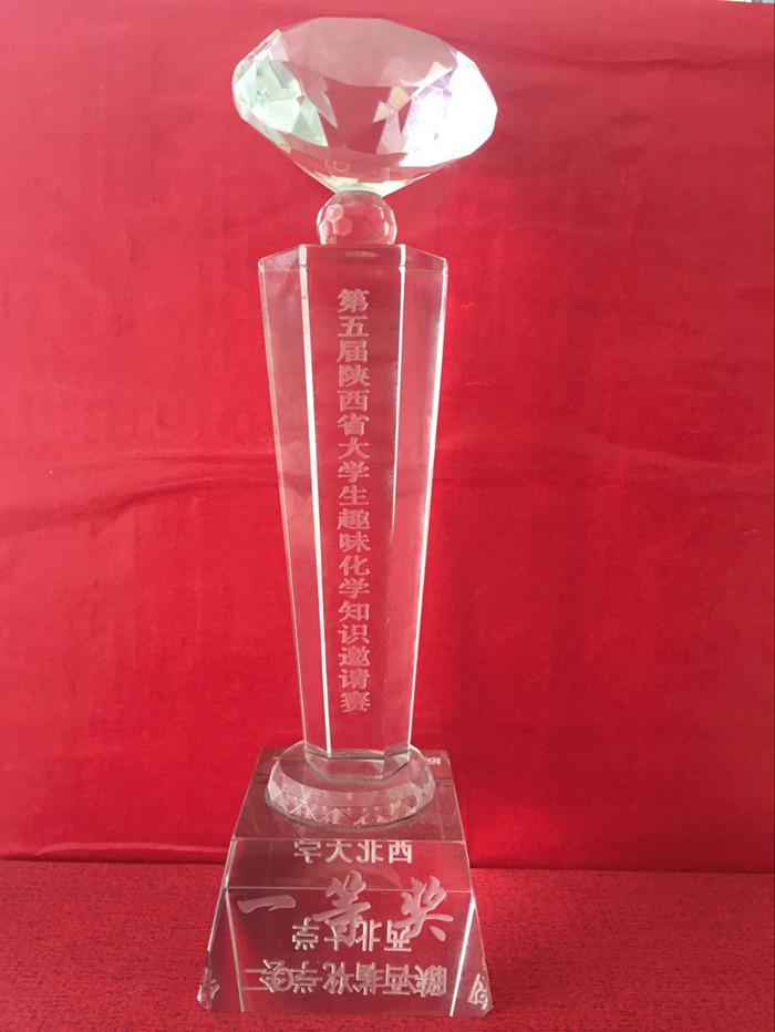 承办的第五届陕西省大学生趣味化学知识邀请赛在西北大学长安校区隆重举行,一飞冲天2013级本科生张恒杰、温丹、万娇娇、冯倩四名同学代表一飞冲天参赛荣膺一等奖。