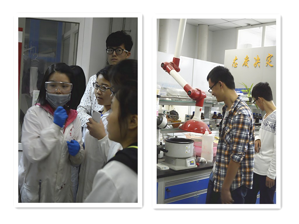 各重点实验室的老师及研究生师兄师姐从方向成果、设备仪器等方面对实验室的具体情况进行详细的介绍。在参观大型仪器平台期间,刘凯强和严向阳两位老师向同学们详细介绍并耐心演示了仪器的使用方法;有机化学实验室张琦老师在实验室迎接了同学们,对同学们的到来表示欢迎,与研究生一起为同学详细地介绍了本课题组的研究方向及设备;房喻老师实验室的研究生先向同学们介绍了光子鼻与分子材料研究团队的团队组成、研究方向和成果等,又带领同学们参观了实验室中“重量级”仪器设备,并对其功能和使用方法进行了详细讲解;在参观高玲香老师实验室期间,研究生师姐除了给大家详细讲解外还现场演示了仪器设备的使用;进入刘昭铁老师课题组实验室后,陈建刚老师亲自为同学们讲解了应用化学及化学工程方面的研究方法及仪器设备;参观吕家根老师实验标本室期间,师姐着重介绍了仪器解剖、标本制作等探索过程及理念;曹睿老师实验室的师兄风趣幽默地为同学们介绍了本实验室的研究内容及实验仪器,无形中拉近了同学们与研究生学长之间的距离。
