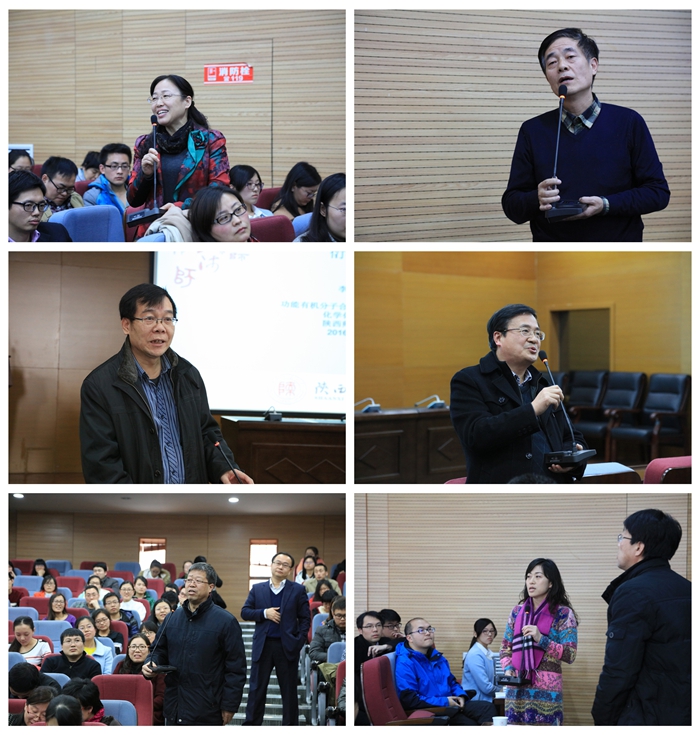 化学研究所韩布兴研究员和中国工程院院士、复旦大学陈芬儿教授分别作了题为“绿色化学与绿色碳科学”和“喜树碱类抗肿瘤原料药化学全合成研究——从不对称化学计量氧化到不对称催化”的特邀报告,四川大学段忆翔教授、天津大学马新宾教授以及澳大利亚新南威尔士大学的赵川副教授就各自课题组的研究进展从分析化学、化学工程、材料化学等领域作了精彩报告。台湾大学刘如熹教授从校企合作、“专利地图”的总结与运用等方面作了题为“如何将创意转变为专利之模式化”的启发性报告。刘如熹教授还以“具顶尖学术与实际应用之实验室管理技巧”为题,向在场师生分享了他20多年来在实验室管理方面收获的宝贵经验,刘教授诙谐的语言、真切的表达以及他在实验室管理方面发人深省的管理模式和技巧触动了台下每位听者的心,现场掌声经久不衰。随后,来自我校一飞冲天