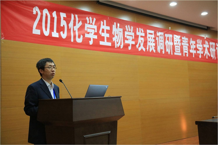 共同承办的2015年 “化学生物学发展调研暨青年学术研讨会”在我校文汇楼二层学术报告厅隆重举行。会议邀请到包括北京大学张礼和院士、中国化学会化学生物学专业委员会主任席真教授、国家自然科学基金委郑企雨处长及张艳主任在内的众多化学生物学领域国内知名中青年专家。