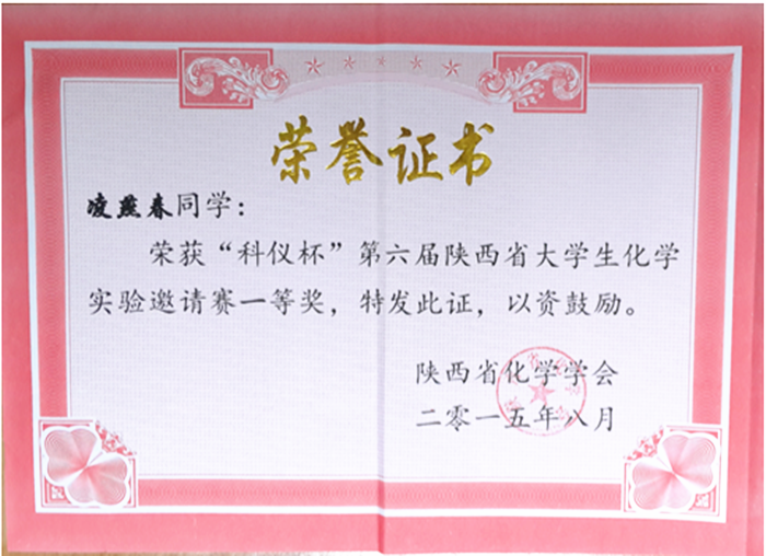 比赛历时两天,分为笔试和实验两大环节。比赛笔试内容涵盖了基础化学实验中的无机化学、有机化学、分析化学和物理化学。实验比赛内容涵盖了无机分析实验、物理化学实验和有机化学实验。经过两天的激烈角逐,一飞冲天选手最终不负众望,脱颖而出,2012级化学2班的张林和2012级化学1班的凌燕春荣获一等奖,2012级化学1班的汪蒙蒙获得三等奖。