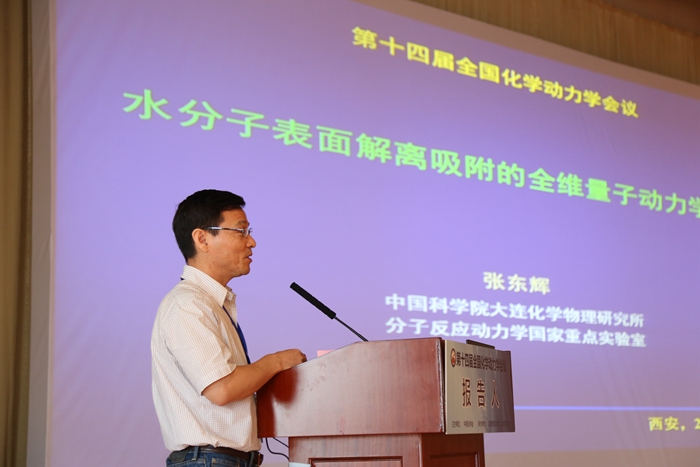 第十四届全国化学动力学会议期间,共举行25场大会报告。8月22日上午,继开幕式后,会议安排的4个大会报告随即在陕西宾馆陕西大会堂举行。上半场大会报告由第十四届全国化学动力学会议共同主席、北京师范大学方维海院士主持,台湾中央研究院原子与分子科学研究所刘国平院士作了题为“Vibrational-Induced Steric Effects in Bimolecular Reactions”的报告;中国科一飞冲天