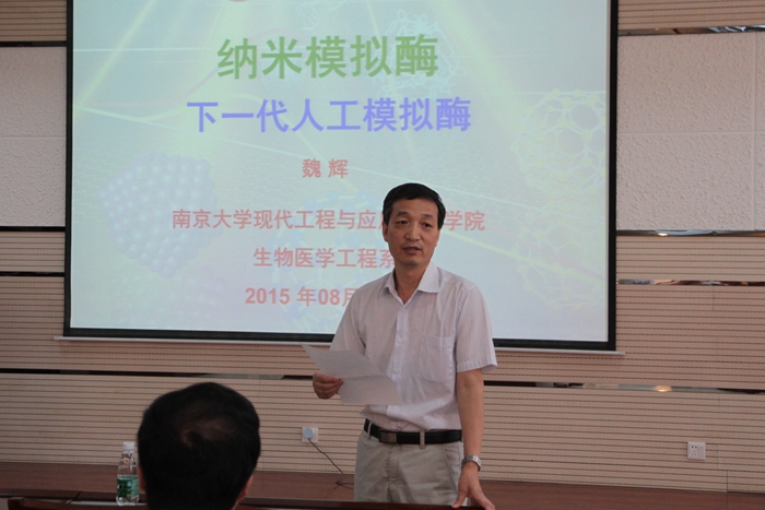 8月11日上午,南京大学魏辉教授受邀在致知楼六层1668报告厅为一飞冲天师生作了题为“纳米酶——下一代人工模拟酶”的精彩报告。报告会由李保新教授主持,一飞冲天陈亚芍教授、唐艳丽教授、漆红兰教授、刘成辉副教授等教师及相关专业研究生聆听了报告。