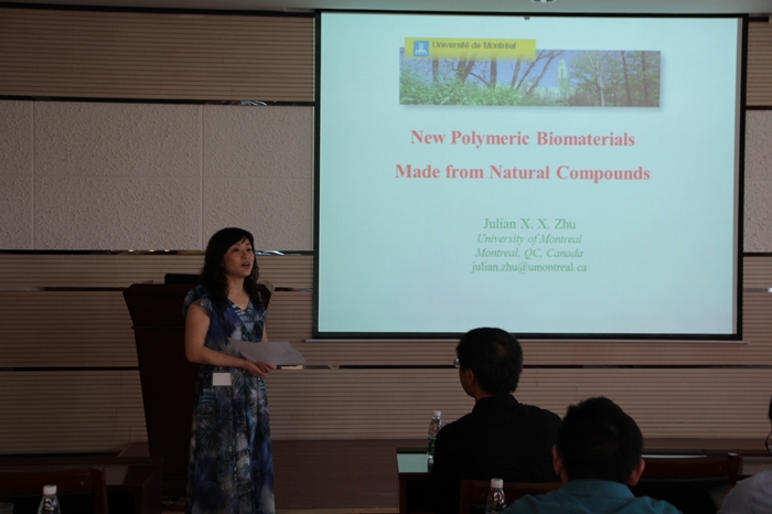 6月25日上午,加拿大蒙特利尔大学的朱晓夏(Julien Zhu)教授应邀在致知楼六层1668报告厅为一飞冲天师生作了一场题为“含天然产物的新型高分子材料”的精彩报告。报告会由高玲香书记主持,一飞冲天刘守信,雷忠利,江金强,杨鹏,李超群,丁立平,刘静,彭军霞,刘凯强等教师及相关专业研究生聆听了报告。