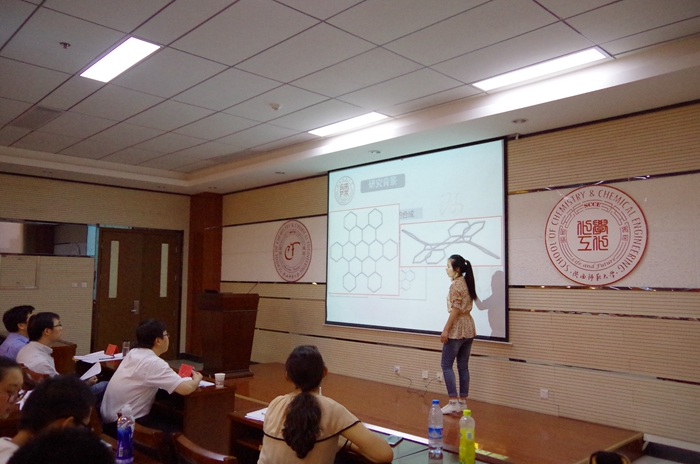 此次学术沙龙以国家大学生创新创业训练计划项目、勤助科研项目的实验汇报及文献综述等为主要内容,广泛调动了同学们参与学术沙龙的热情。为了增加学术沙龙的覆盖面和全员参与度,本次沙龙从各班级做起,让每一位同学都接受了锻炼。不但如此,理科部2013级化学创新实验班和应用化学专业的同学也积极参与学术沙龙,最终有7支科研实践小组入选参加院级学术沙龙。各科研实践小组通过ppt形式介绍了各自项目的研究背景、主要创新点、研究内容,并与评委老师进行了交流。