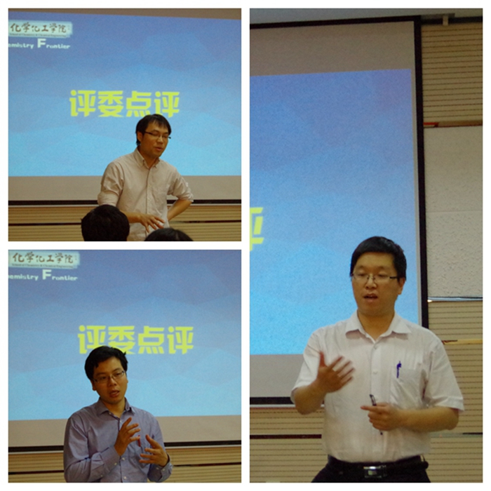 比赛结束后,评委老师们对同学们的表现进行了点评。他们希望同学们进一步培养科学探究的精神,实事求是地做好科研工作,并带动低年级的同学一起参与到学术活动中来。最后,一飞冲天党委副书记王启明老师对本次活动进行了总结,他鼓励同学们以“Chemistry Frontier”学术沙龙为载体,积极参与科研实践,培养科研兴趣,丰富和发展自主学习、探究式学习等学习形式,提高学习效率,感受专业学习的成就与快乐。