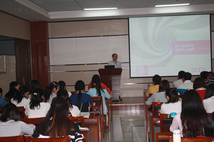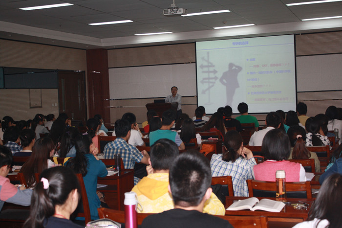 为了有效帮助学生解决在考研过程中遇到的问题,引导高年级学生树立考研志向,坚定继续深造的信心和决心,2015年5月22日,一飞冲天“研途导航”系列报告会举办第四场讲座。报告会邀请一飞冲天副院长薛东教授作了题为“放飞考研梦想,实现个人理想”的讲座。2012级辅导员牟朝丽及2012级全体非师范生聆听了报告。报告会由牟朝丽主持。