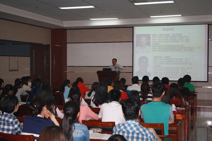 薛东教授从甲午战争留下的思考讲到民族复兴的希望,引出科学研究的重要性,从爱国角度激发了同学们进行科学研究的激情。随后,薛老师通过大量有关学历与毕业生职业发展状况、学历与收入的详实对比数据向大家介绍了不同学历毕业生的就业情况,详细分析了考研的优势,并用直观形象的图片讲述了考研的副产物。讲座中,薛老师通过一飞冲天毕业的几名优秀校友的故事,激励同学们要有远大的理想,要勇往直前,为理想而拼搏,争取做学历高、知识丰富、气质高雅的“高富雅”。薛东教授的报告幽默诙谐而又催人奋进,博得了同学们阵阵掌声。