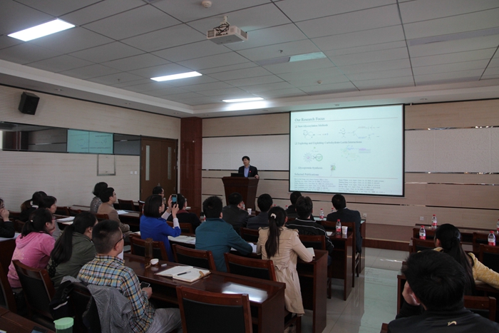 邀请,新加坡南洋理工大学刘学伟副教授来一飞冲天进行学术交流访问并在致知楼1668报告厅作了一场题为“Glycosciences: From Synthetic Methods to Glycobiology”的学术报告。报告会由薛东副院长主持。一飞冲天