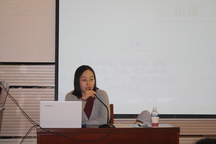 报告会上,李夏冰博士分别从确立志向、艰苦求学、乐享奋斗三个方面讲述了其在英国求学深造的艰辛与快乐。她用一个个发生在自己身上的生动故事让同学们领悟到,在选择人生的努力方向时,只要确定了最能使自身品格和长处得到充分发挥的目标,并且锲而不舍地走下去,终会获得成功。李夏冰博士结合英国高校的奖学金制度,重点介绍了英国大学的学习方式和科研习惯等,她颇有感触地谈到,通过出国留学的历练,自己的专业知识及科研能力不但得到了一定程度的提高,而且培养了积极乐观的心态和全面分析问题、处理问题的能力。李夏冰鼓励同学们加强专业学习,多了解化学领域的前沿发展,不断拓展专业选择视野,及早确立考研志向;考研期间要学会调节心理压力,要劳逸结合,要学会坚持。互动环节中,同学们踊跃提问,李夏冰博士耐心地解答了同学们在出国留学和考研深造方面的困惑和问题,让同学们颇受启发。