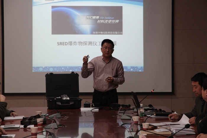 副院长辛云宏,科技处处长吴晓军、副处长张卫兵,南方办事处主任闫永昌,宣传部部长孔祥利参加了会议。会议由马进福主持。 蔡文斌首先从“隐藏爆炸物超灵敏探测装置”的生产背景、生产过程、市场价值、企业未来发展方向等几个方面系统地汇报了该项目的生产情况,随后向与会人员展示了产品。
