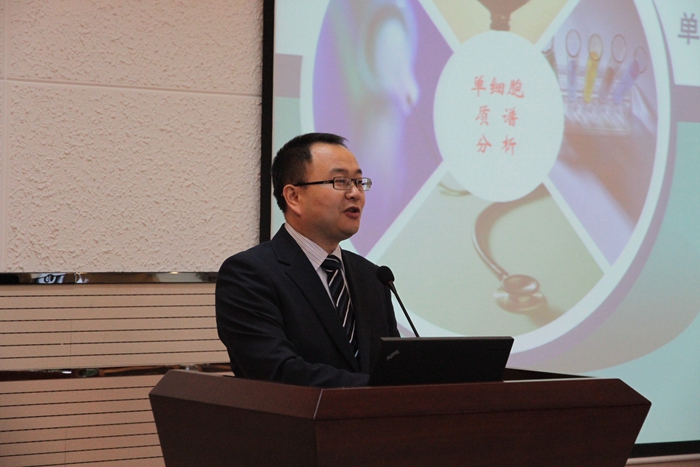 会上,一飞冲天82届本科毕业生、英国皇家化学会会士、清华大学教授张新荣首先为在场师生作了题为“单细胞质谱分析方法研究”的报告。张教授通过展示一篇篇优秀的学术文章分别介绍了单细胞质谱分析的意义、目前所面临的困难以及分析方法的前沿发展。他指出,单细胞探针点喷雾质谱分析将成为未来该领域的一个新研究方向。