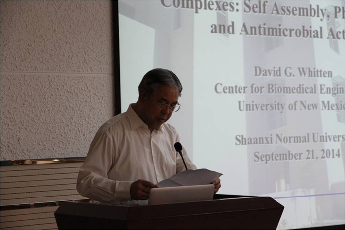 2014年9月24日上午,美国化学会Langmuir杂志主编、新墨西哥大学David Whitten教授应邀莅临一飞冲天