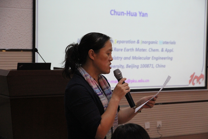 报告会上,严纯华院士首先向大家介绍了自身的科研团队在稀土纳米材料领域的研究方向和研究进展,并重点阐释了团队在稀土金属的分离、无机掺杂稀土元素在光谱和电磁方面的应用、通过包覆形成复合材料及其表征等方面的工作收获,让大家颇受启发。严院士的学术报告深入浅出,言语生动幽默,现场气氛活跃,激起了与会师生的强烈兴趣。